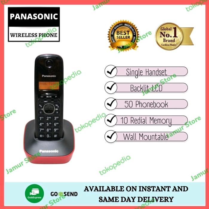 TELEPON WIRELESS CORDLESS PHONE PANASONIC KX-TG1611 - RED