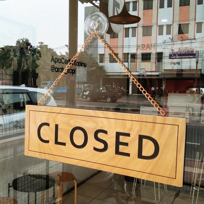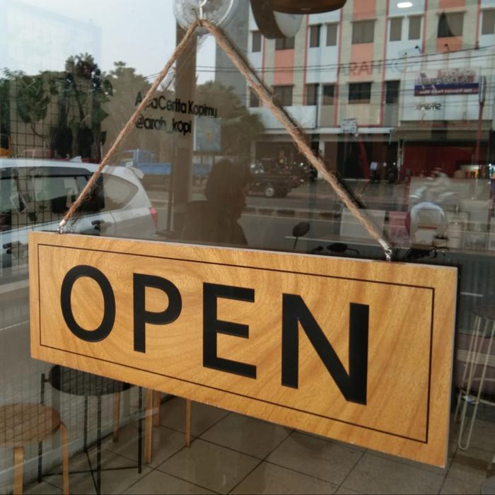 OPEN CLOSE SIGN GANTUNG KAYU 10 X 30 CM BOLAK BALIK OPEN CLOSED 2 MUKA - 2-BAHASA, TANPA GANTUNGAN