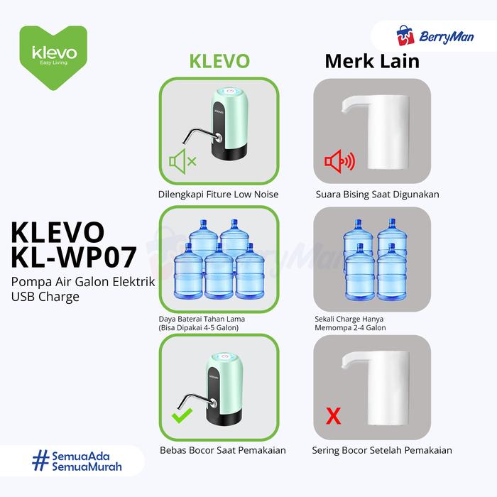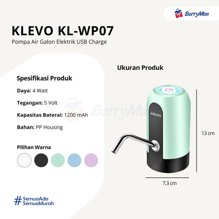 KLEVO KL-WP07 POMPA GALON ELEKTRIK LED RECHARGEABLE TYPE C AUTOMATIC WATER PUMP PORTABLE - TOSCA, STANDART