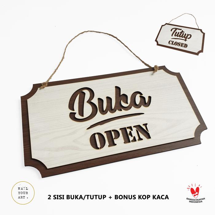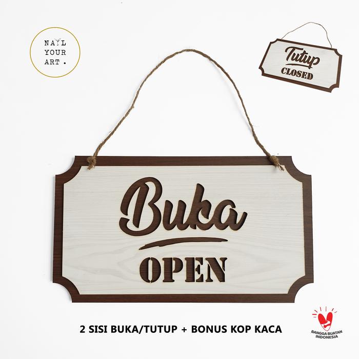 GANTUNGAN SIGN CAFE OPEN CLOSED - BUKA TUTUP MEDIUM - DENGAN KOP KACA