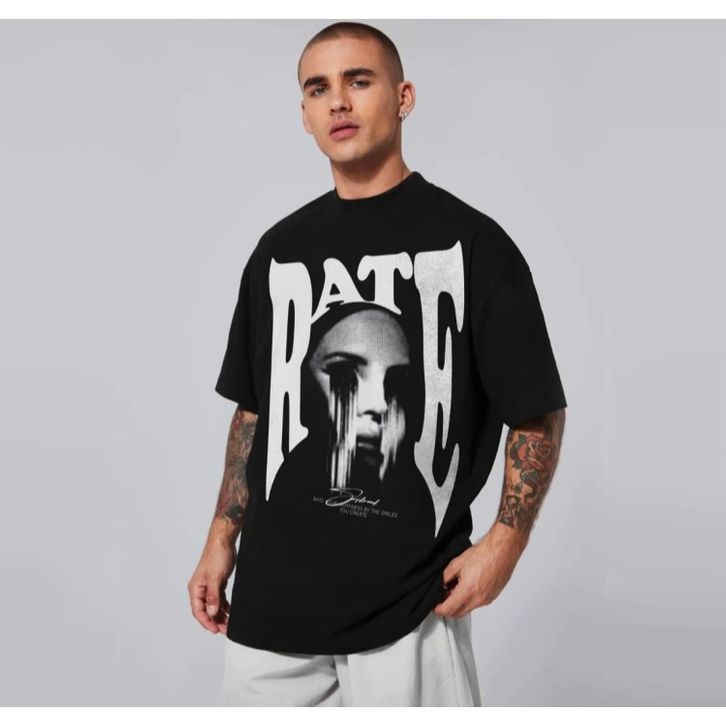 YAZR Kaos Boxy Oversized RATE black Kaos Distro Unisex Cotton Combed 24s - Kaos Tebal 210g BY ORIGINAL PRODUCT