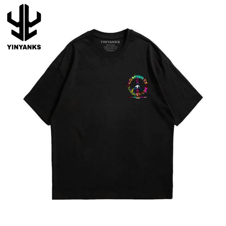 Yinyanks T-Shirt Peace love lengen pendek kaos distro Black bahan katun BY ORIGINAL PRODUCT