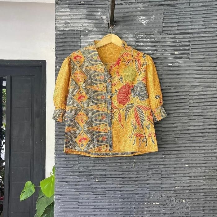 Aida Batik Atasan Wanita Blouse Batik Wanita Kerja Kantoran Encim Kunyit - Bls Kunyit S