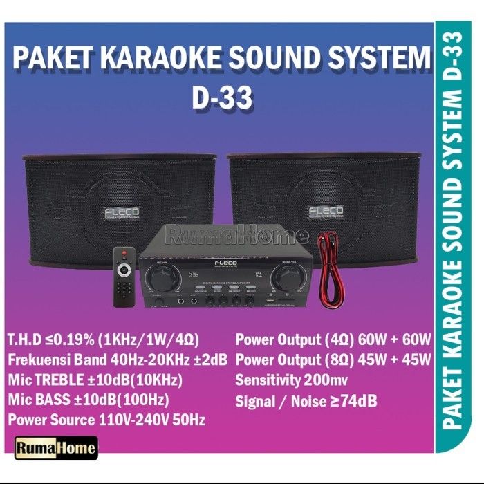 TERMURAH Paket sound system karaoke 8 inch Fleco D-33 Bluetooth - USB - SDCard
