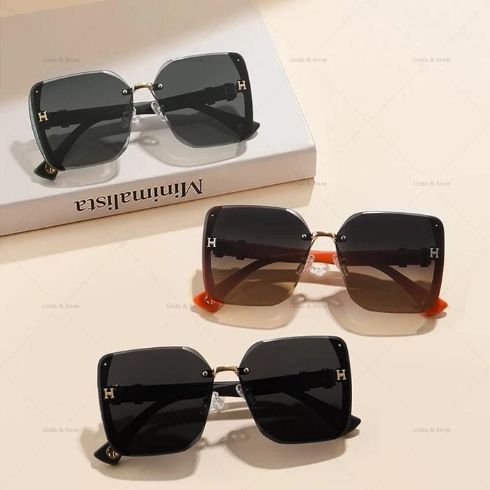 [Buy 1 Get 1] Kacamata Hitam Titanium Kotak H Wanita Sunglasses - Hitam Hitam