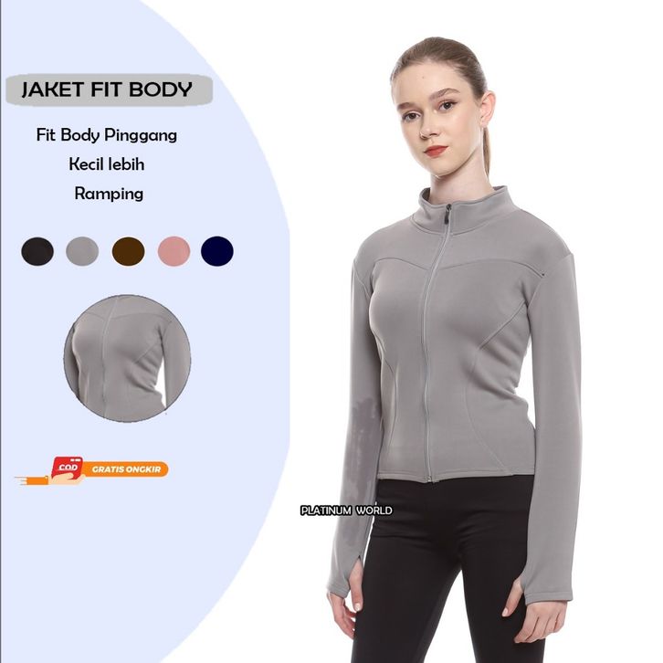 PLATINUM WORLD Jaket Olahraga Lengan Panjang Fit Body Wanita Yoga Pilates Lari Gym Fitnes Pink Premium Quality
