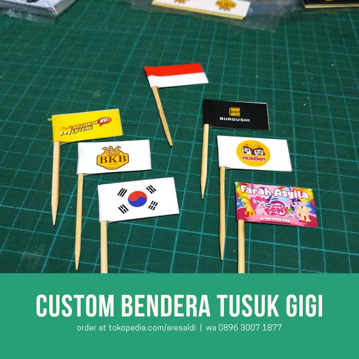 TUSUK GIGI CUSTOM BENDERA SNACK / KUE / STEAK / TOPPER ULANG TAHUN - QTY 100PCS