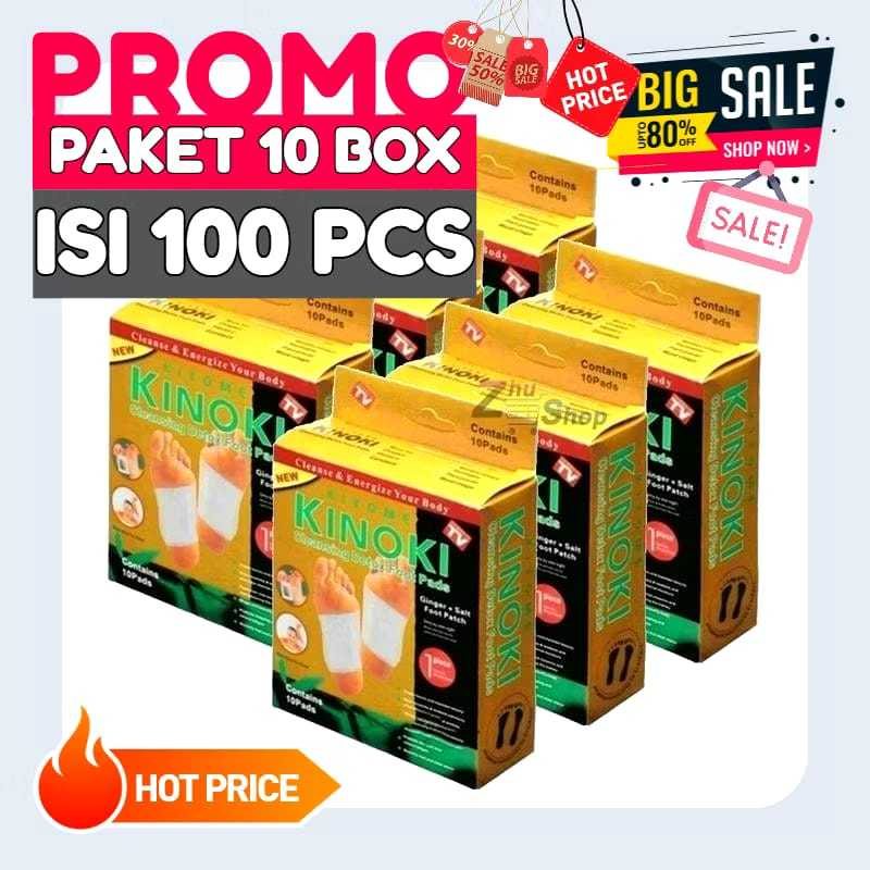 (RDM) PAKET HEMAT 10 BOX 100 PCS Kinoki Koyo Herbal Detox Kaki Original Gold Toksin Ampuh Buang Racun