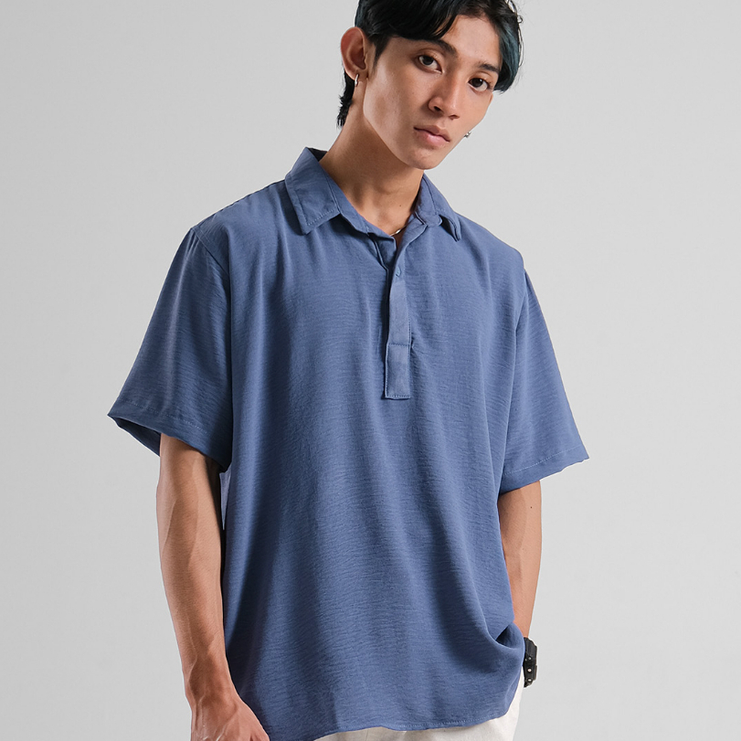 HAMATA STUDIOS - BRAVE CRINKLE SHIRT STEAL BLUE