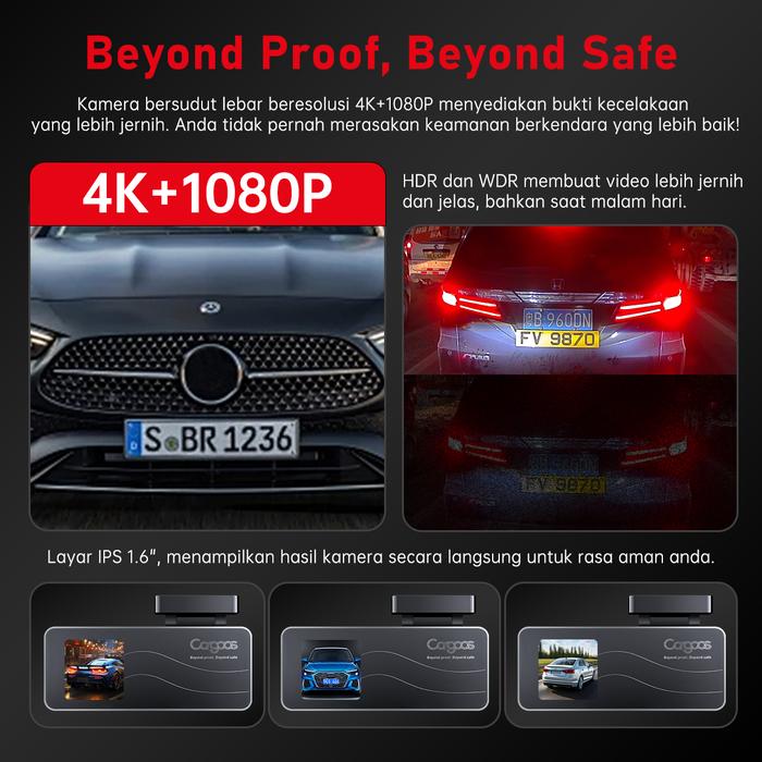 [4K] CARGOOS O1 FREE DASHCAM 4K+1080P WIFI LAYAR 1.6'' IPS DUAL KAMERA MOBIL HDR+WDR DEPAN+BELAKANG - O1 FREE