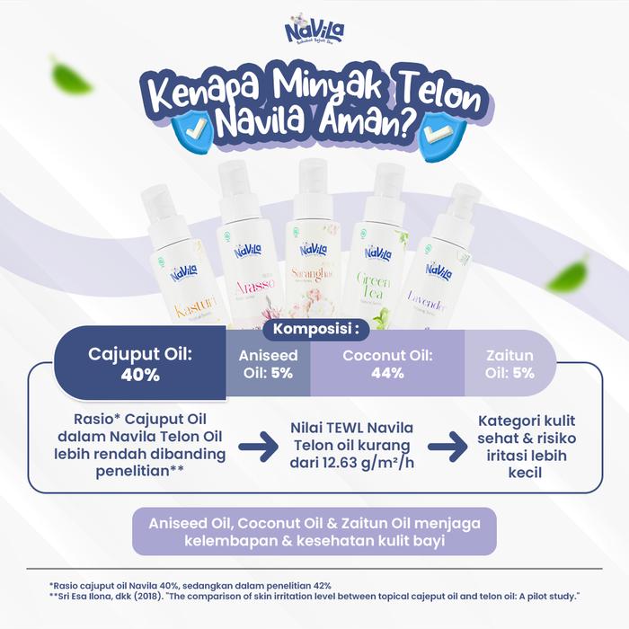 NAVILA MINYAK TELON WANGI 100 ML UNTUK BAYI BALITA BARU LAHIR BPOM DAN HALAL MUI ARASSO SARANGHAE GREENTEA LAVENDER KASTURI TELON OIL BAYI MENGHANGATKAN TELON - SARANGHAE