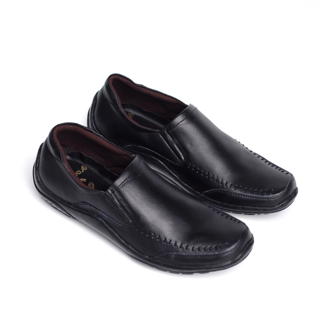 GRANDABLE - Sepatu Formal Pantofel Pria Kulit Asli Kerja Kantor - Vrdick Hitam Tan Coklat