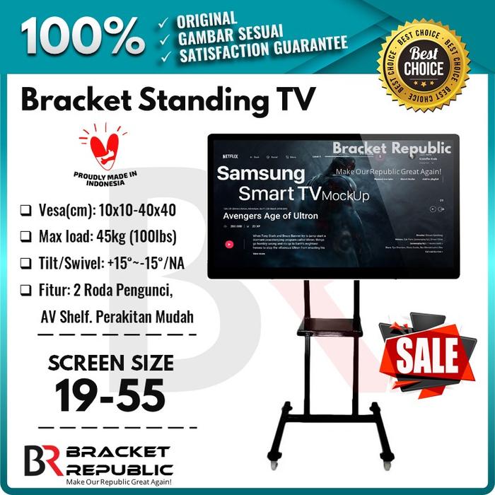 BRACKET STANDING TV 65 60 55 50 49 43 32 INCH BRAKET STAND TV RODA DORONG TROLLEY - 19-50 INCH