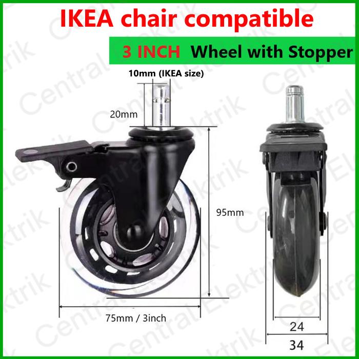 RODA KURSI ROLLERBLADE - IKEA COMPATIBLE - PU - 10MM - SATUAN: REGULAR, RODA 2.5 INCH