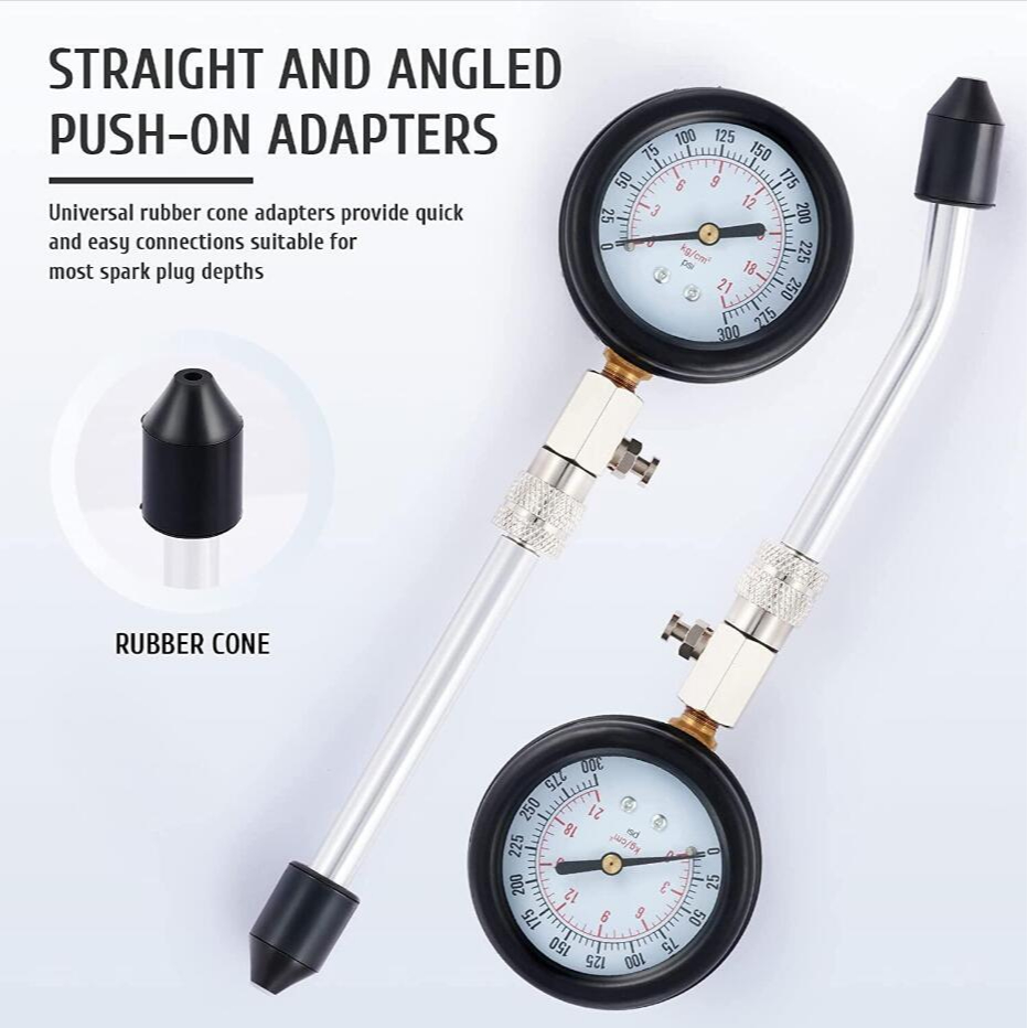 8Pcs Set Tester Kompresi Silinder Mesin Mobil Alat Pengukur Tekanan Gas Cylinder Compression Tes Kebocoran 0-300PSI Gasoline Engine