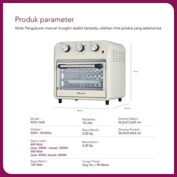 KIRIN OVEN LISTRIK 19 LITER - KBO-190LW (LOW WATT) - 16 LITER, HITAM
