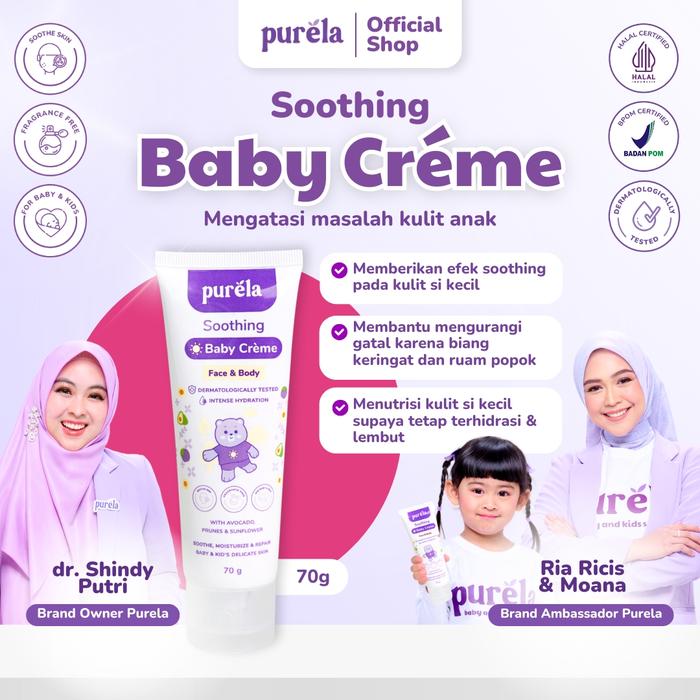 [OFFICIAL] PURELA SOOTHING BABY CRÈME (70GR) - GLOWING MUKA & BADAN , MEMBANTU MENGHILANGKAN RUAM & BIANG KERINGAT, BEKAS LUKA - NATURAL ORGANIC | BPOM & HALAL MUI
