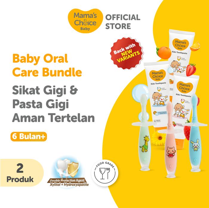 SIKAT GIGI DAN PASTA GIGI ANAK-ANAK (TODDLER DAN BABY) | MAMA'S CHOICE BABY ORAL CARE BUNDLE - MY FIRST TOOTHBRUSH & BABY - KIDS TOOTHPASTE UNTUK ANAK DAN BAYI - STRAWBERRY 2 PCS