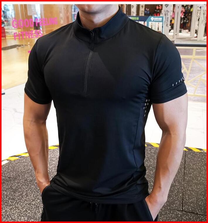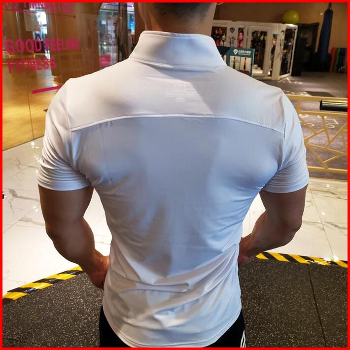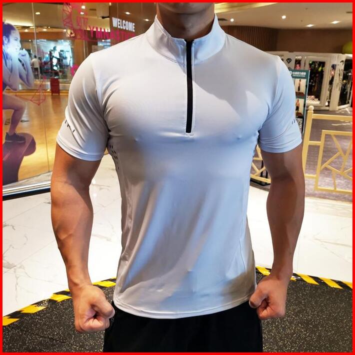 Kamb Kaos Pria Resleting Lengan Pendek Kerah
