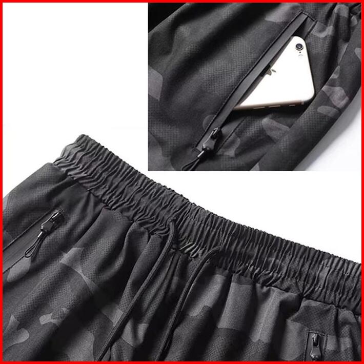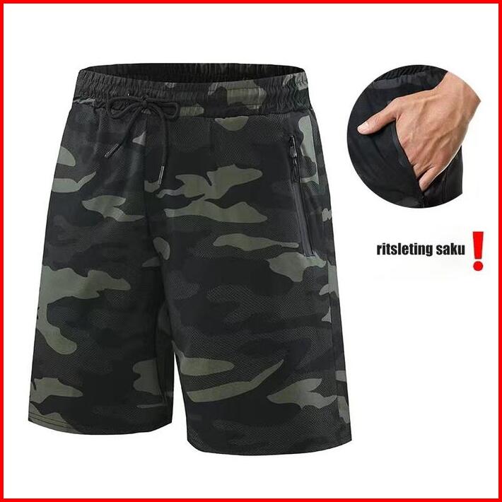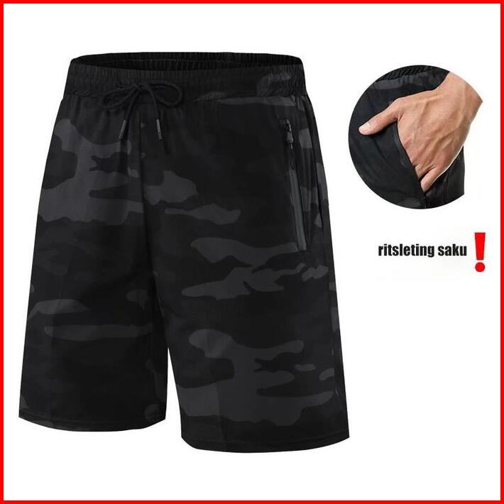 Kamb Celana Pendek Saku Resleting Kamuflase Hitam Hijau Dewasa Pria