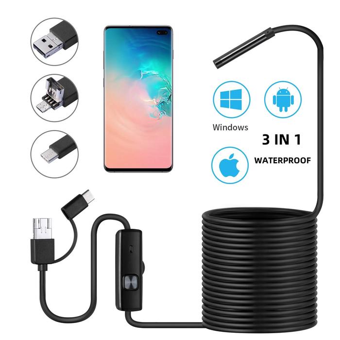 KAMERA ENDOSCOPE 3-IN-1 HD TAHAN AIR INDUSTRI 2METER 5METER MINI WATERPROOF - CCTV LED WIFI CAMERA - HARD 2M