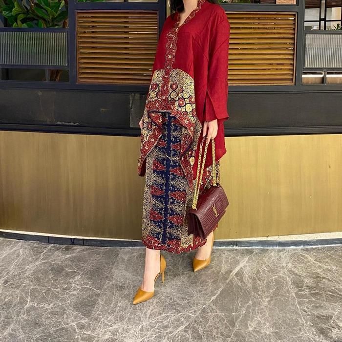 Lausboutique-Rinjanie Set-SKS-Setelan Batik Mewah atasan fit Karet Panjang - Cherry