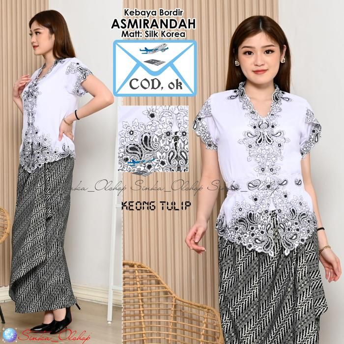 Kebaya Encim Modern Silky Import Apl Brukat Full Bordir - Keong Gading M