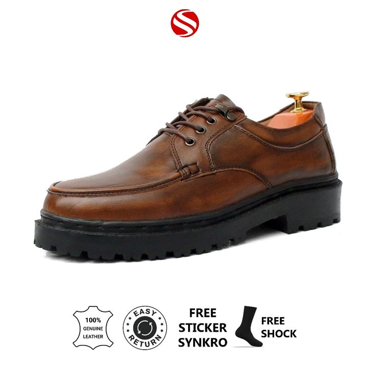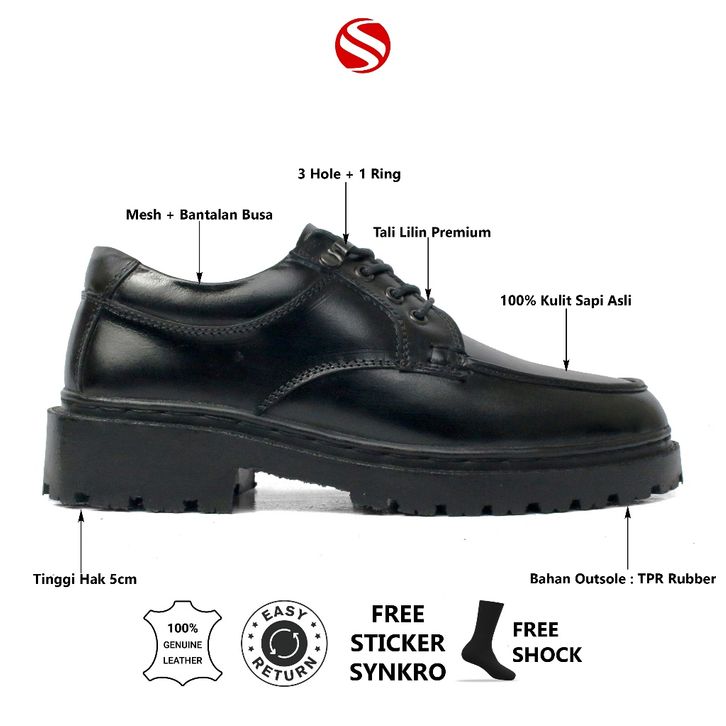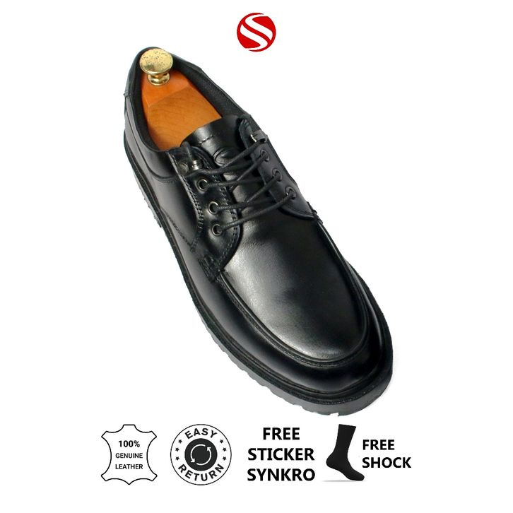 39-43 Synkro Satya - Sepatu Pria Kasual Formal Oxford Hak 5cm Kulit Asli Hitam BY ORIGINAL PRODUCT