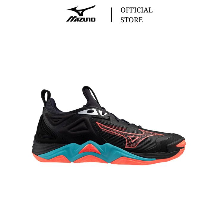 MIZUNO SEPATU VOLLEY WAVE MOMENTUM 3-BLACK/NEON FLAME/PEACOCK BLUE MIZV1GA231206