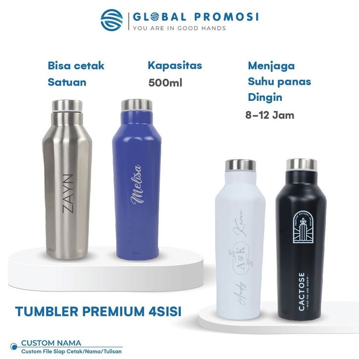 Custom Tumbler Premium 4 Sisi Datar 500ml Stainless Stell Laser Grafir Cetak Nama / Logo Souvenir