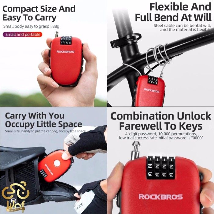 TERLARIS ROCKBROS RK0302 KUNCI GEMBOK SEPEDA HELM TELESCOPIC BICYCLE LOCK CABLE