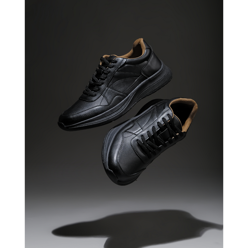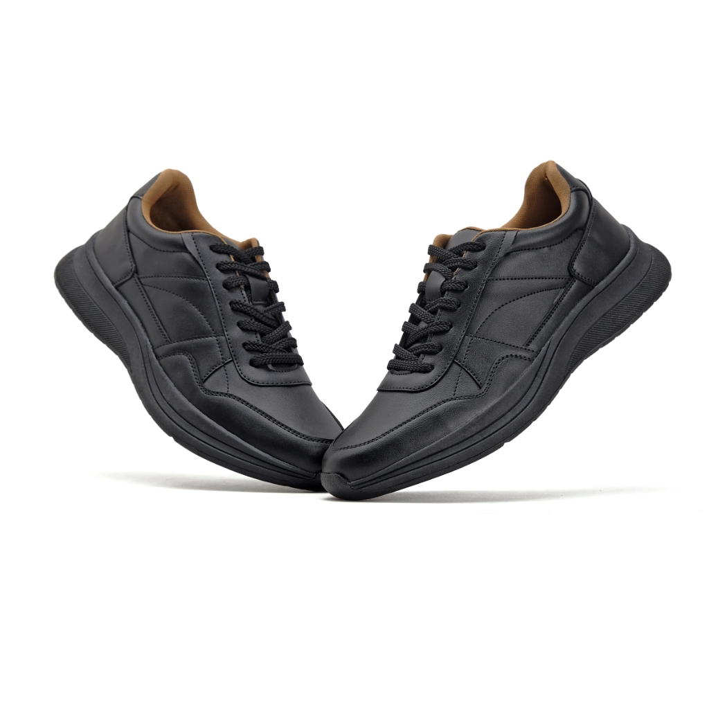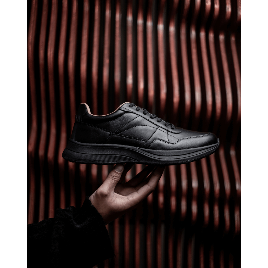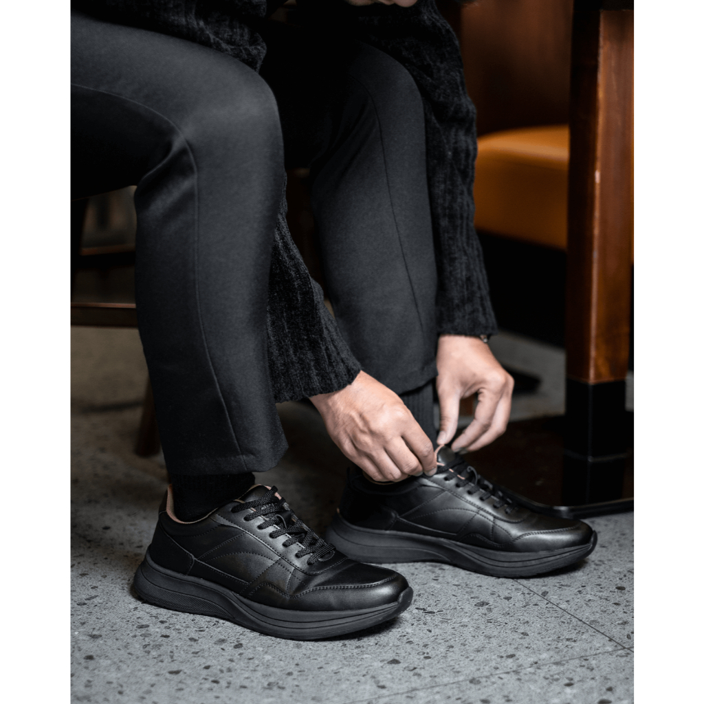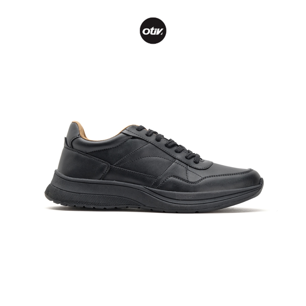 Otiv Black - Sepatu Sneakers Kulit Casual Pria Kuliah Kerja Traveling Riding