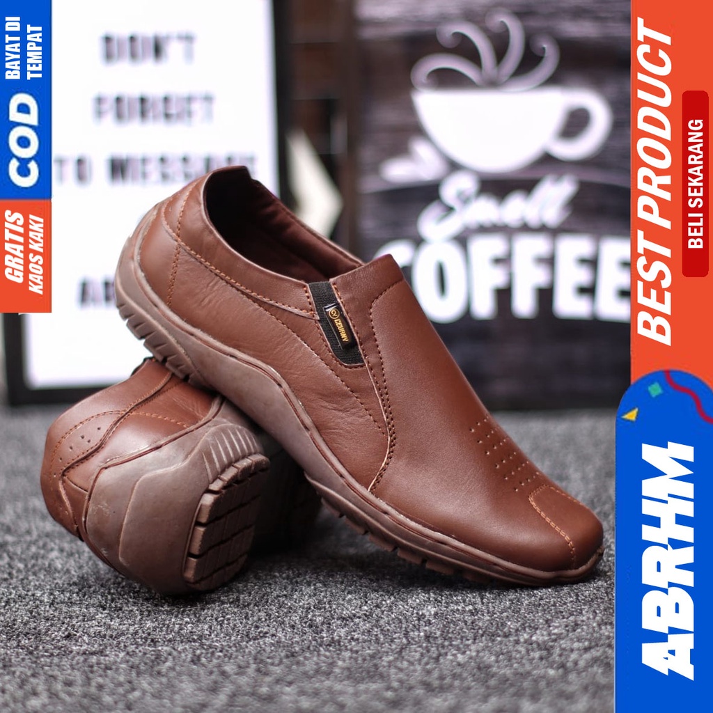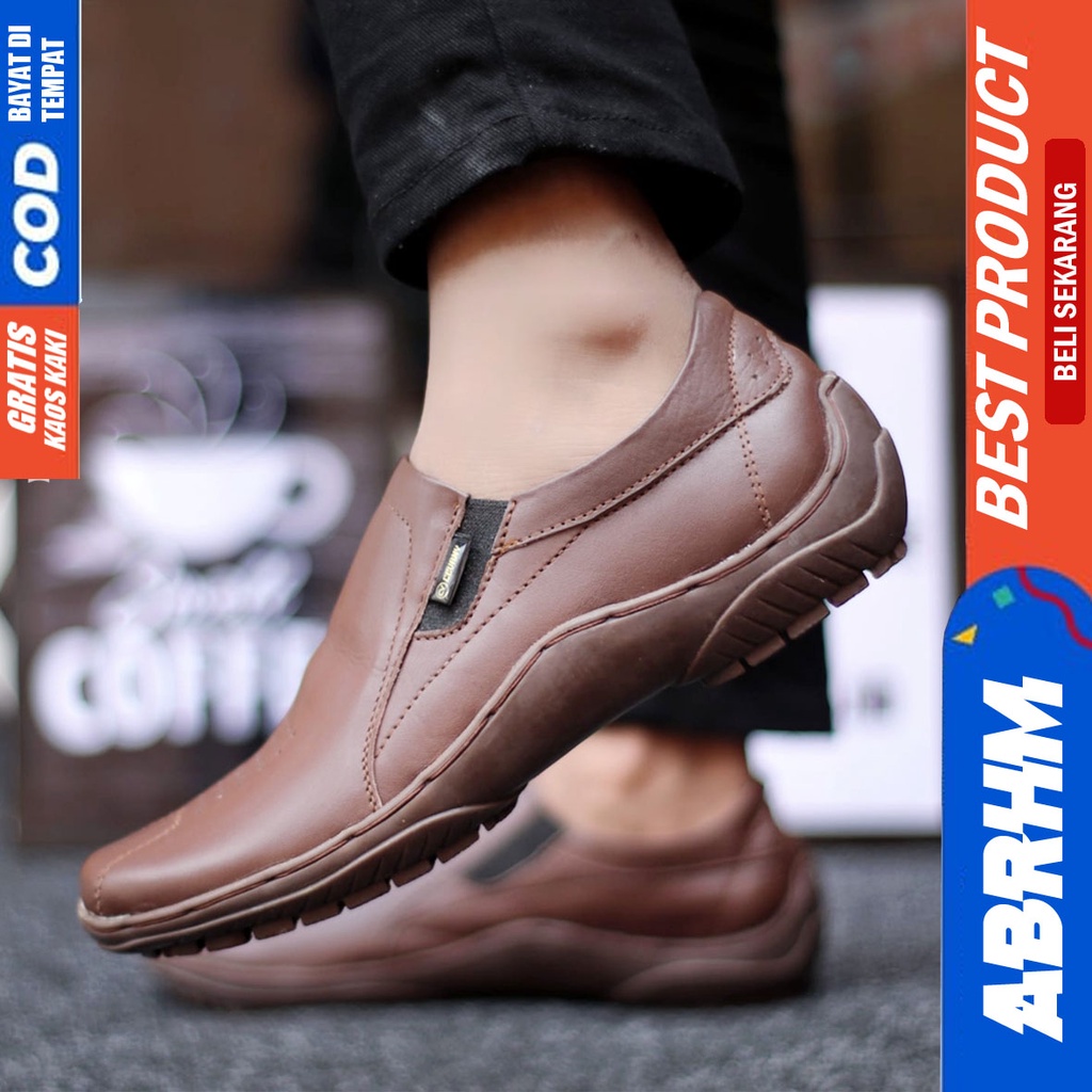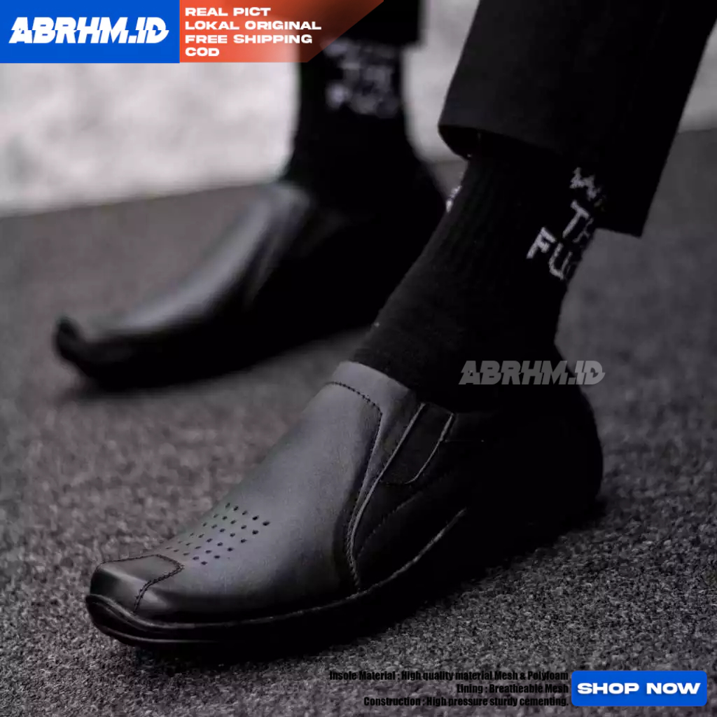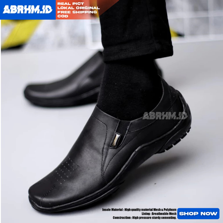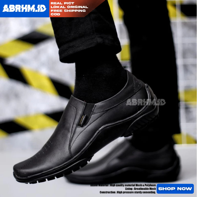 Sepatu Formal Pantofel Kerja Kulit Asli Hitam Pria ABRHM BADIL