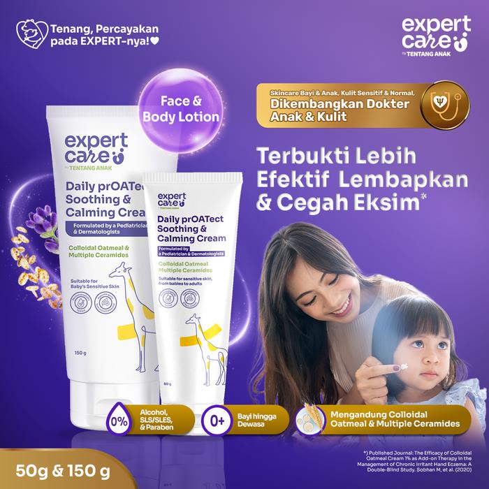 EXPERT CARE FACE & BODY LOTION CREAM MOISTURIZER | PELEMBAP BAYI ANAK | COLLOIDAL OATMEAL CERAMIDE KULIT SENSITIF CALMING KOLIK NEWBORN RUAM - TRAVEL SIZE 50GR