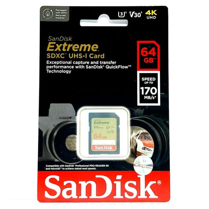 MEMORI KAMERA MEMORY CAMERA SD SDHC CARD SANDISK EXTREME 64 GB 64GB