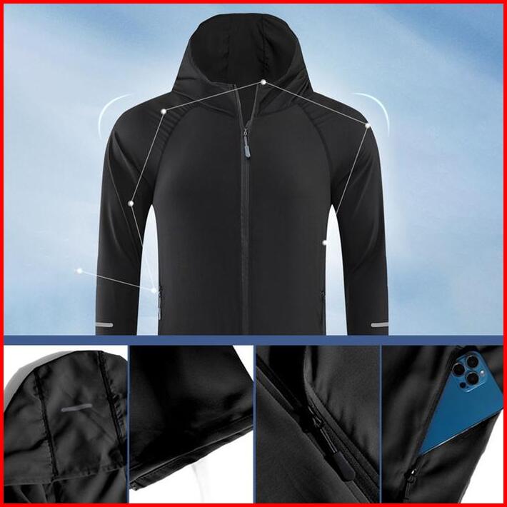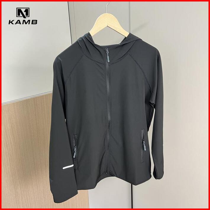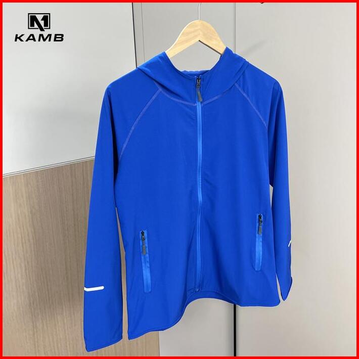Kamb Jaket Parasut Pria Running Outdoor Windbraker Jogging Hoodie Zip Lengan Panjang Olahraga Pakaian Sport