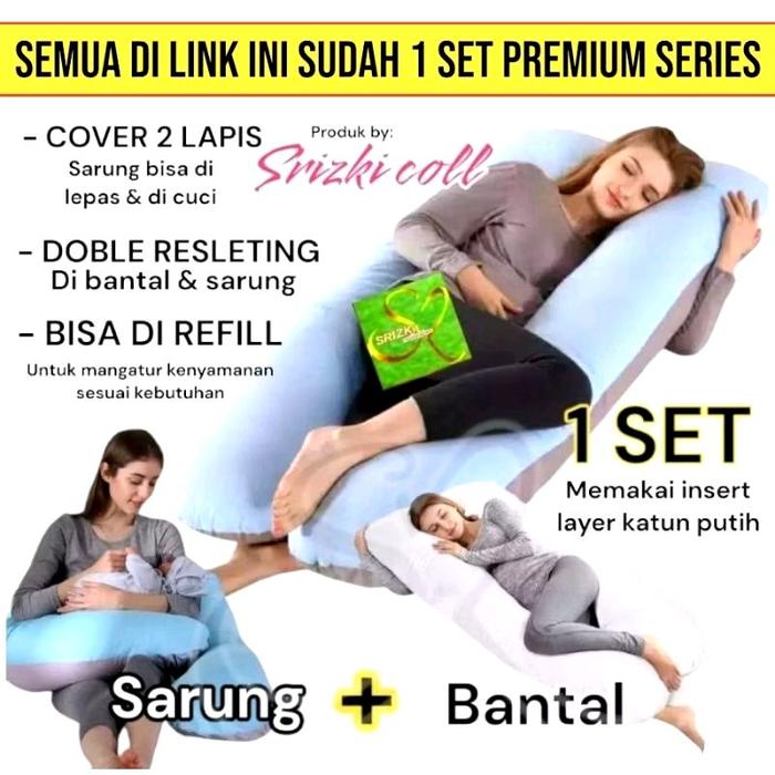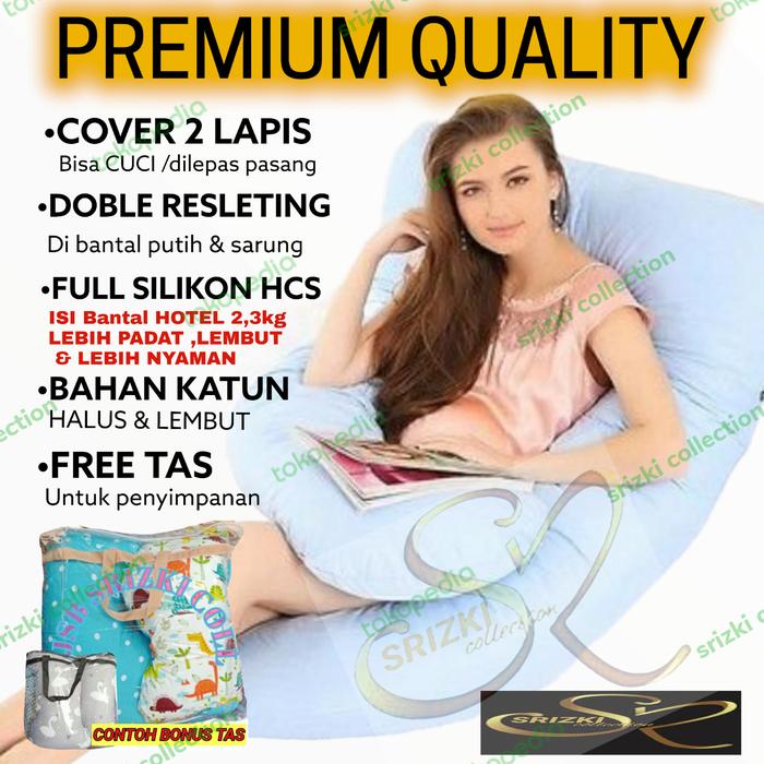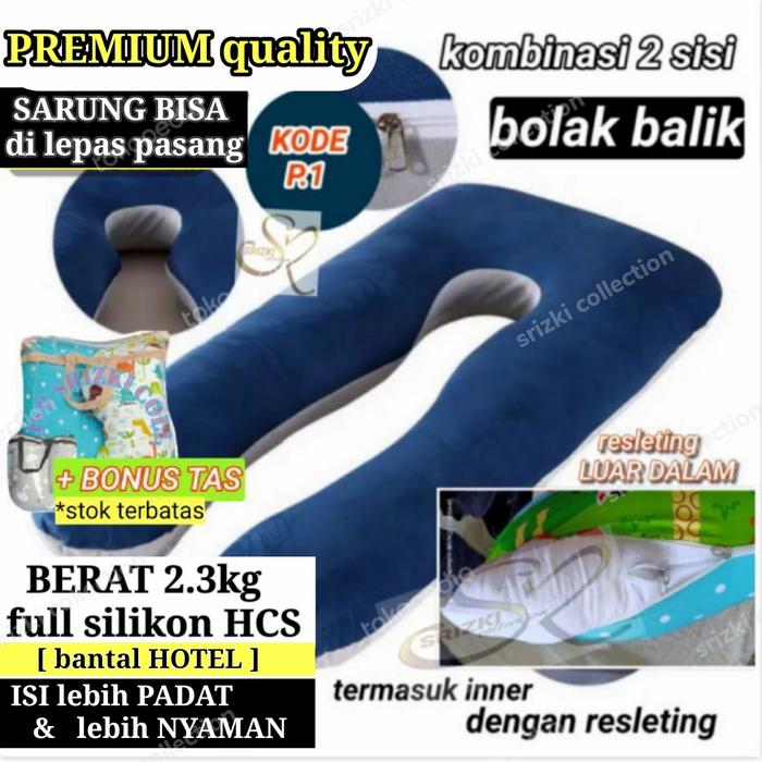 SRIZKI COLLECTION BANTAL IBU HAMIL JUMBO PREMIUM 120X75CM SARUNG BISA DILEPAS ANTI PEGAL SAKIT PINGGANG GRATIS TAS BANTAL HAMIL NYAMAN DAN AMAN UNTUK BUMIL - MONSTERA NAVY
