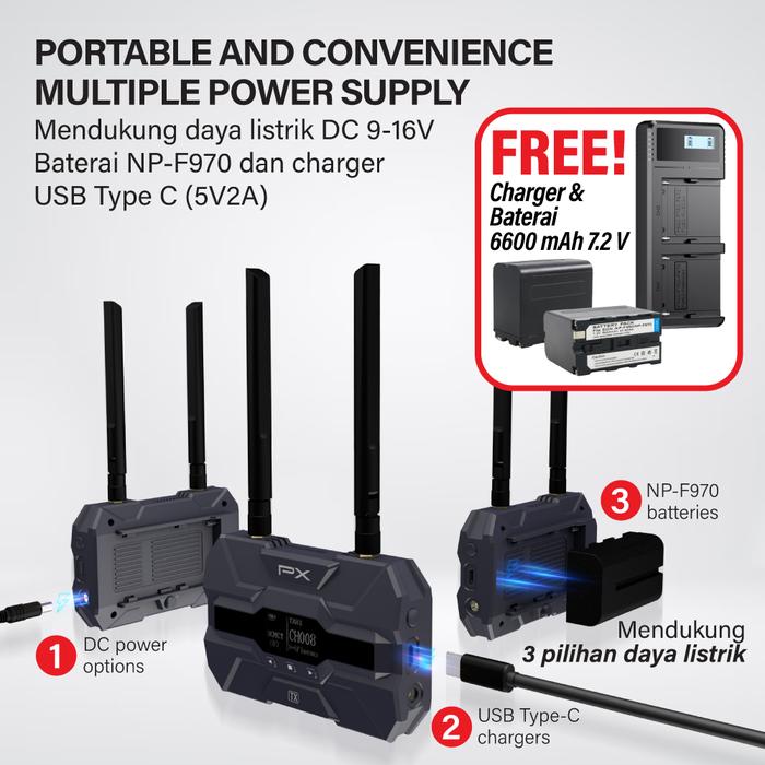 HDMI WIRELESS VIDEO TRANSMITTER RECEIVER PROFESSIONAL KAMERA MONITORING TV MONITOR DSLR MIRRORLES WIRELESS HDMI 200 METER PX WTR-20 - WTR-20