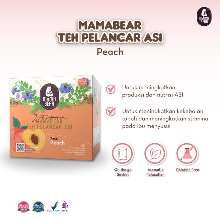MAMABEAR TEH PELANCAR ASI 20 SACHET - ASI BOOSTER PELANCAR PENINGKAT PRODUKSI ASI BPOM DAN HALAL - 1 BOX PEACH