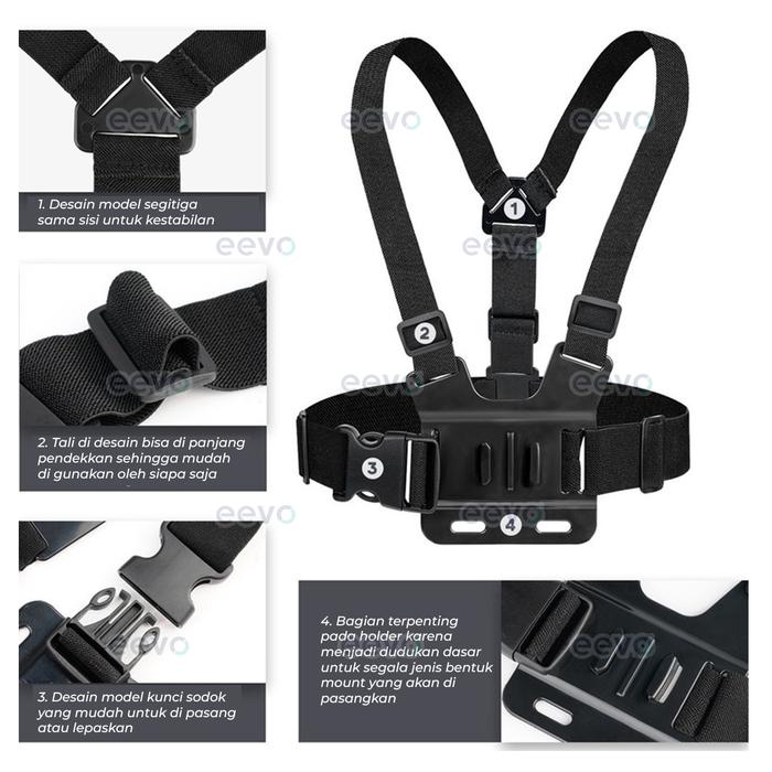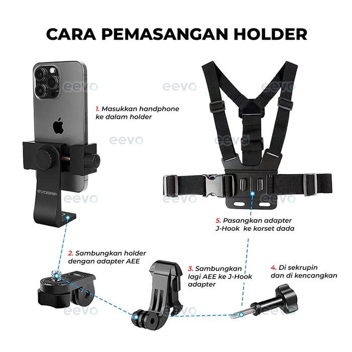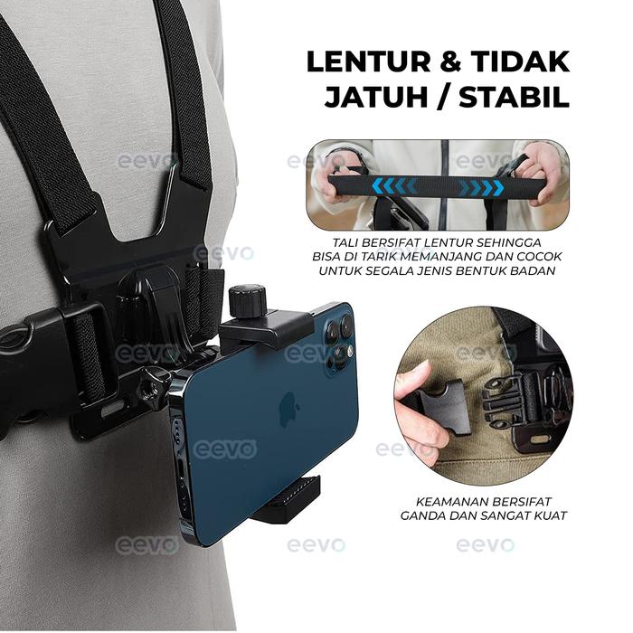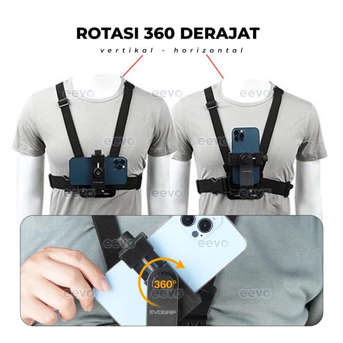 CHEST STRAP HP EVOGRIP AK10 HOLDER TALI DADA HANDPHONE GO PRO HERO ACTION CAM POV CLIP CLAMP DI BADAN TUBUH BODY MOUNT VLOG - EVOGRIP AK10