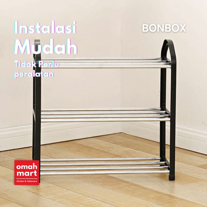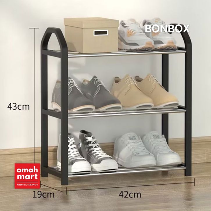 BONBOX Rak Sepatu Sandal Kecil Mini Minimalis Shoe Rack 3 Susun Besi Plastik