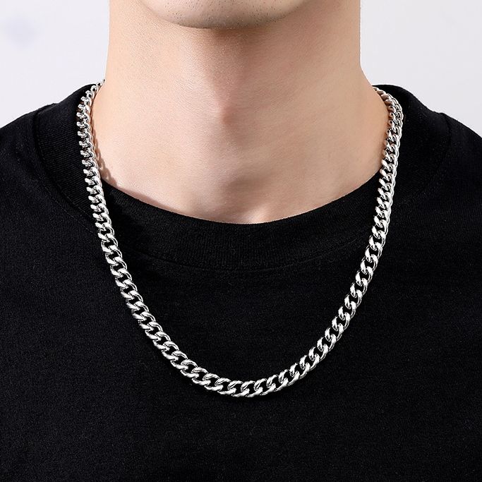 Queenaie Kuba Kalung Pria Rantai Titanium antti kaarat Silver Ukuran Jumbo 50cm BY ORIGINAL PRODUCT