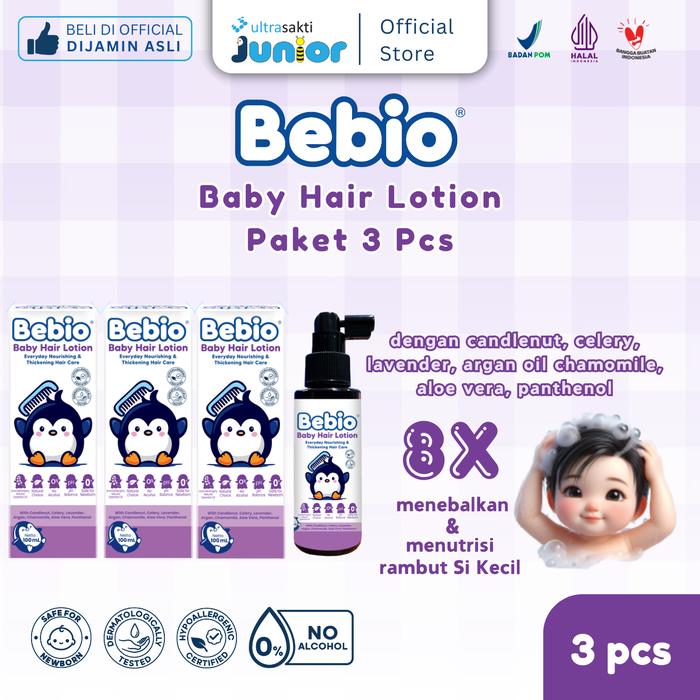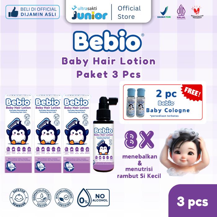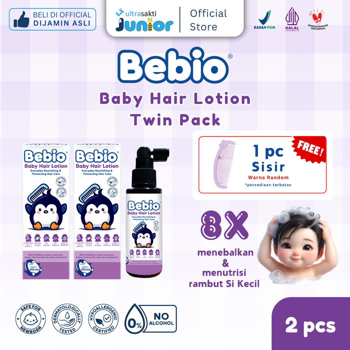 PAKET BEBIO BABY HAIR LOTION 100 ML - 8X MENEBALKAN & MENUTRISI RAMBUT BAYI & ANAK - RAMBUT LEBAT & WANGI SEHARIAN - TWINPACK ISI 2 FREE COLOGNE