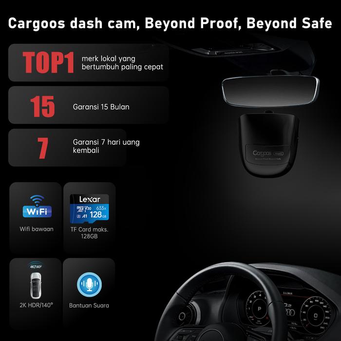 CARGOOS MIRAI E DASHCAM WIFI RESOLUSI KAMERA 1440P 2K SUDUT LEBAR 140° BLACK EDITION - MIRAI E