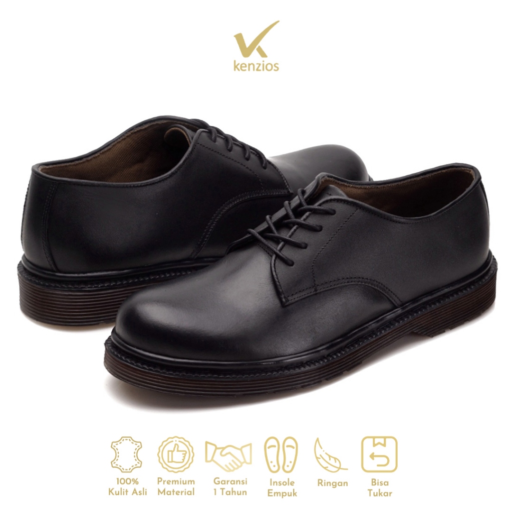 Kenzios Alva Black Series Sepatu Formal Pria Kulit Asli