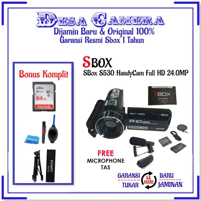 SBOX S530 HANDYCAM FULL HD 24.0MP HITAM (RESMI) FREE MIC VLOG - STANDART BOX