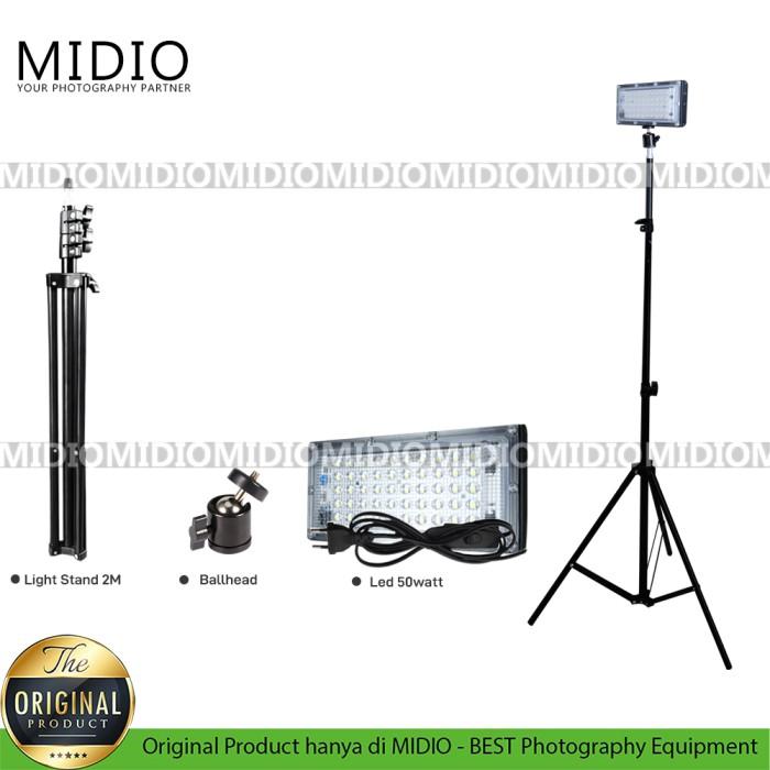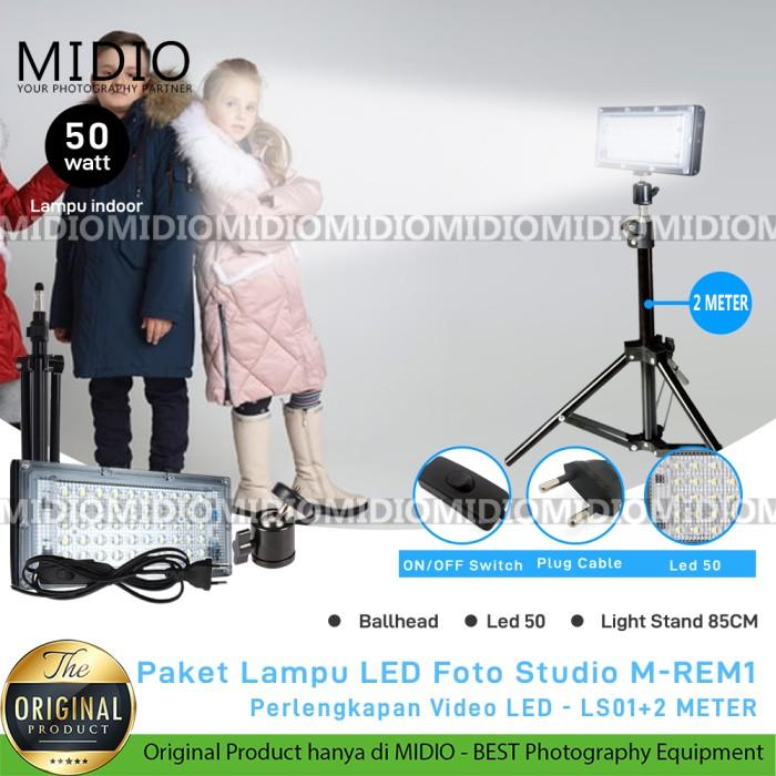 PAKET LAMPU LED STUDIO MIDIO M-REM1 50W + LIGHT STAND 2M + BALLHEAD - HEMAT BUDGET - TRIPOD, CAMERA - REM01+2M