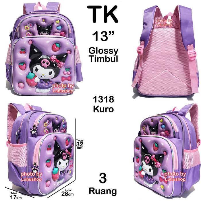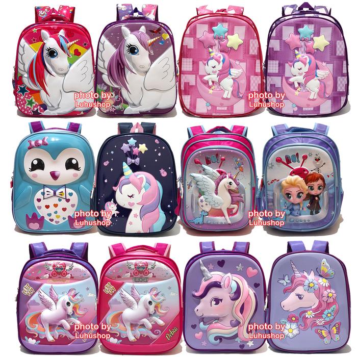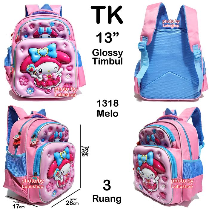 IMPORT TAS GLOSSY SD TK RANSEL ANAK SEKOLAH CEWE PEREMPUAN ELSA - 8251TK KURO