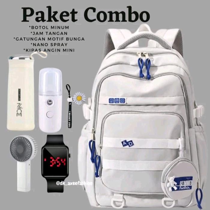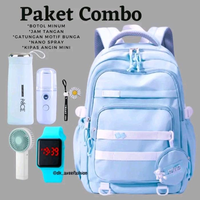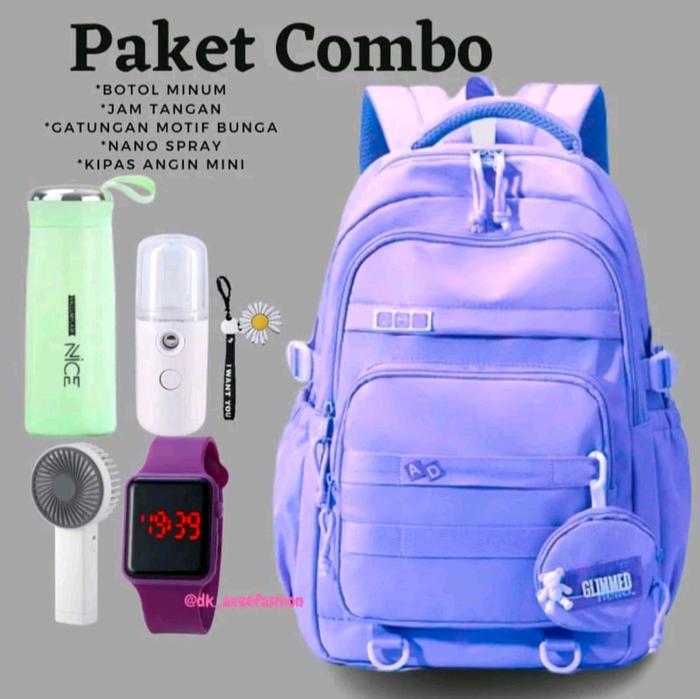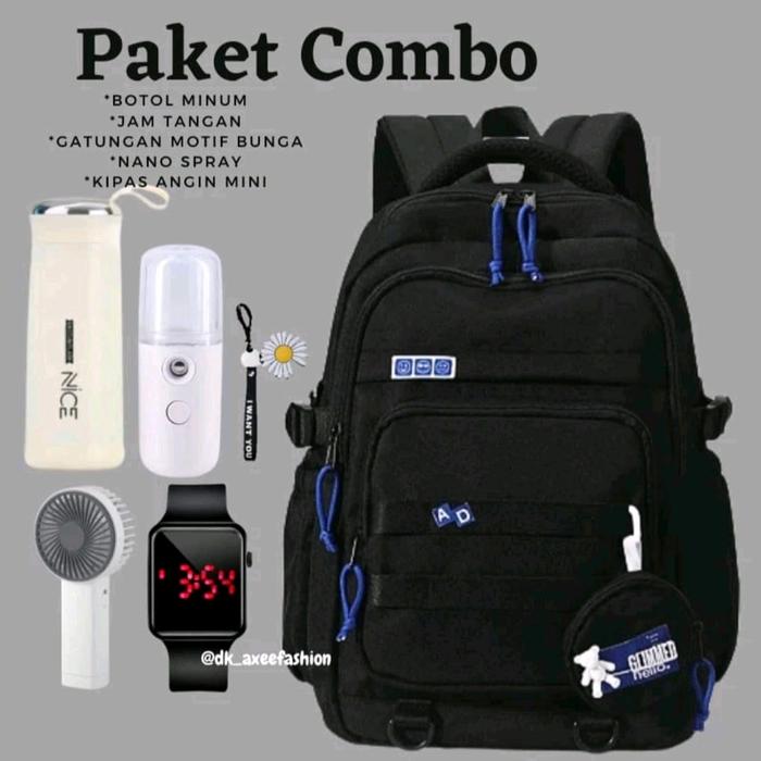 TAS RANSEL SEKOLAH ANAK BANYAK BONUS / TAS SEKOLAH ANAK SMP SMA / BACKPACK ANAK REMAJA KOREA STYLE TAS PUNGGUNG POLOS FASHION - HITAM BONUS