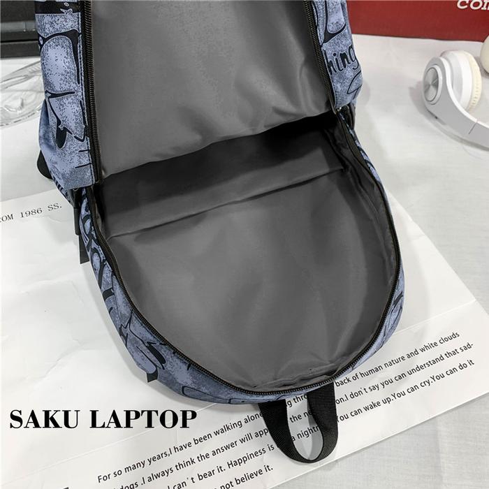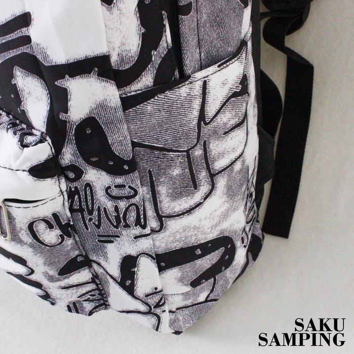TAS RANSEL SEKOLAH ANAK MOTIF ABSTRAK BACK PACK UNISEX STYLISH FASHION YS0105 FASHION - HITAM
